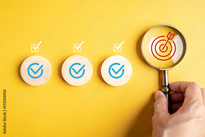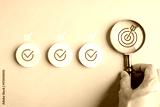 Goal planning and checklist concept with check marks, and target, task completion, productivity, business strategy, and achievement.