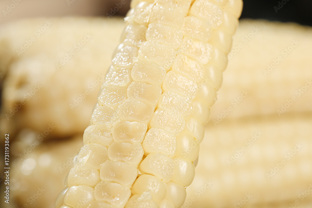 Fresh White Glutinous Corn Cob Close-up - Sweet Kernels Detail