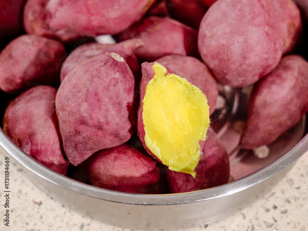 Red Potatoes with Yellow Flesh in Glass Bowl - Fresh Root Vegetables for Healthy Cooking