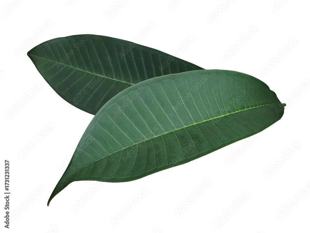 greeClose up green leaves of plumeria or frangipani tree isolated on transparent background. n leaf isolated on white