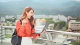 Excited woman holding a laptop and cheering with a fist pump, celebrating achievement
