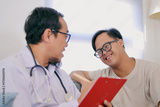 Male Therapist Talks and Encourages Down Syndrome Child During Consultation at Home