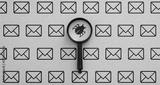 Cybersecurity Threat and Email Security Concept. Bug, Virus or Malware Detected in Messages. Phishing Attack Prevention