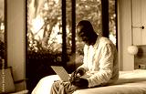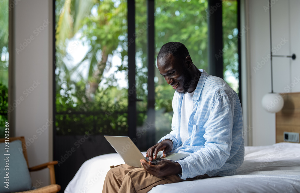 Black man enjoying the endless possibilities of the internet, exploring, connecting with tablet