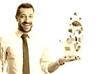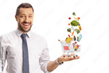Man holding a mini shopping cart on his palm