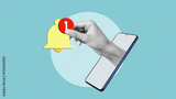 Social media, message, sms, subscribe notice alert and reminder are shown by Hand holding notification bell