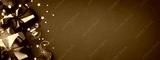 Banner with two gift boxes and Christmas ornaments on red background. Boxing day, Christmas and New Year gifts.
