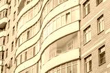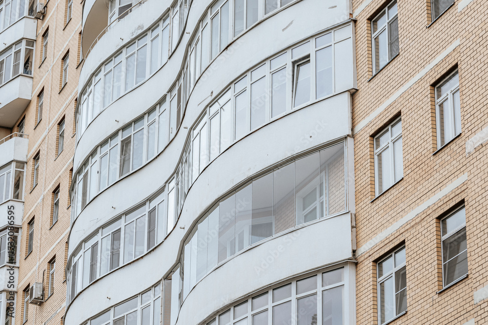 Multi-apartment residential high-rise building. Modern brown brick residential building. Urban modern architecture. Urban landscape.