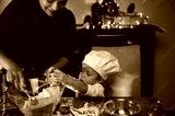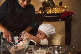 Joyful Mother And Child Baking Gingerbread In A Cozy Christmas Kitchen