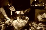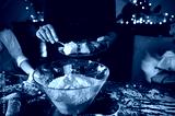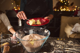 Cozy Christmas Baking Scene: Hands Mixing Butter and Flour for Holiday Treats