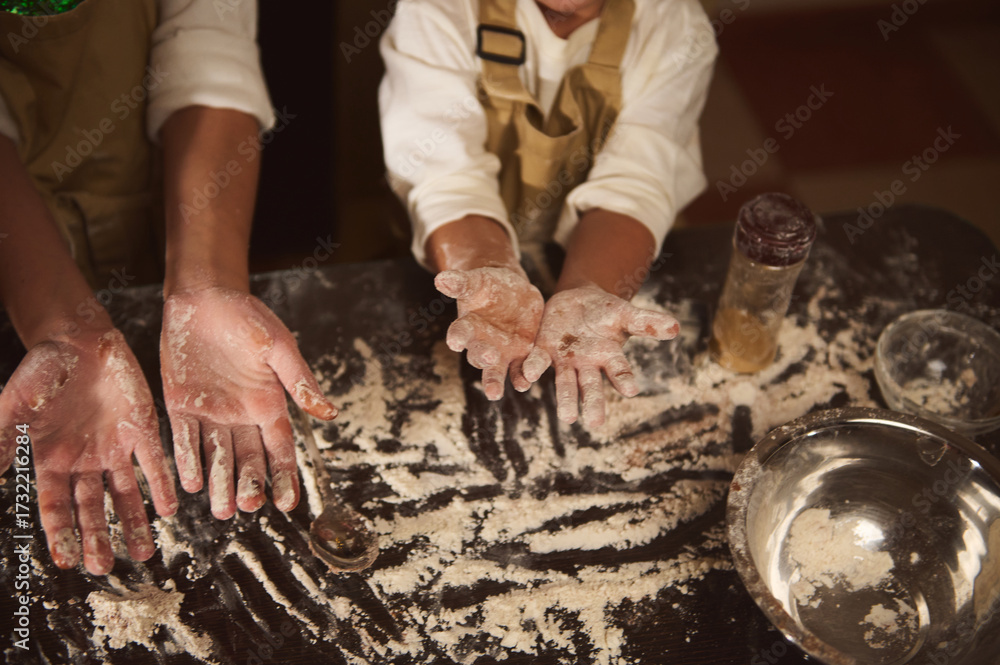 Family Baking Fun: Floury Hands of Kids and Adults in a Cozy Kitchen