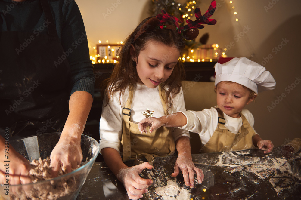 Family Christmas Baking With Kids In Cozy Home Kitchen, Holiday Lights, and Joyful Moments
