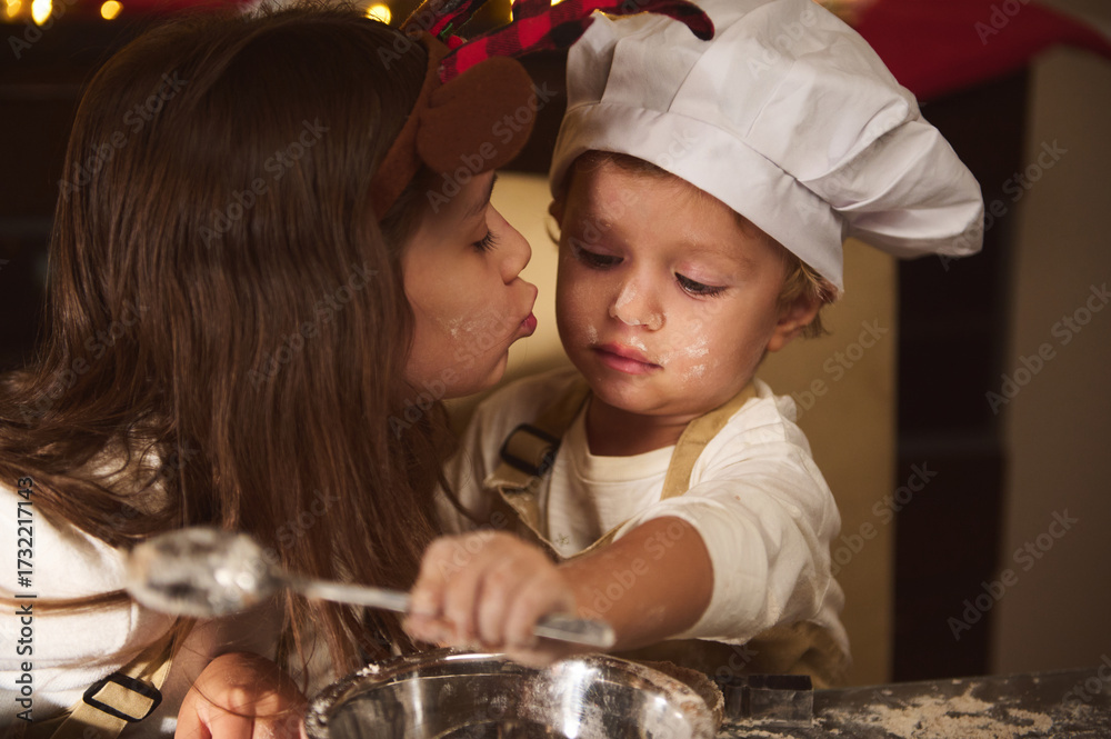 Mother And Child Baking Together In The Kitchen: Little Chef, Flour On Face, Cozy Moment