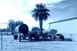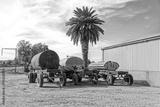 Three old and battered home build water tanker trailers in the Little Karoo, near Oudtshoorn, Western Cape, South Africa