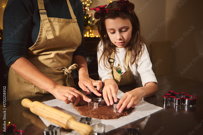 Mother And Daughter Baking Christmas Cookies Together In A Cozy Home Kitchen