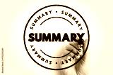 Summary - a brief statement or account of the main points of something, text stamp concept background