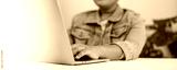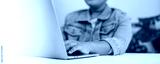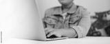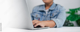 Student working on laptop computer at home digital learning and online education concept