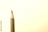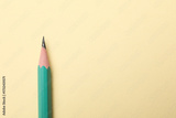 One sharp graphite pencil on beige background, top view. Space for text