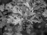 Hawthorn (Crataegus monogyna) branch with cluster of red berries and green leaves, medicinal plant used for heart health and traditional herbal remedies.