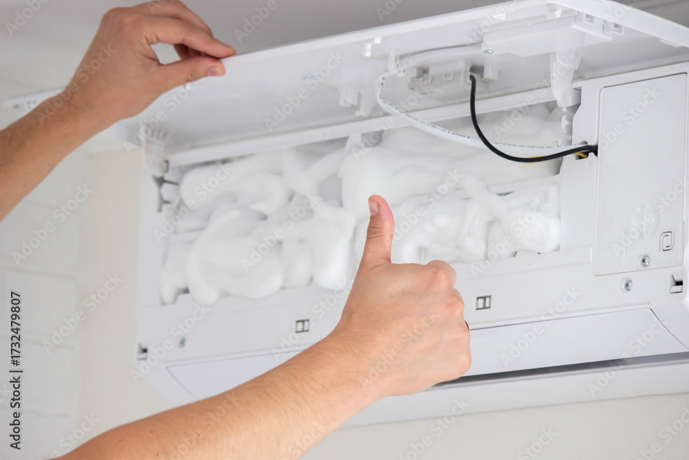 Deep AC Cleaning. Treating the Evaporator with Cleaning Foam