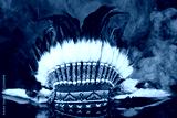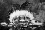 Traditional warbonnet (Native American chief headdress) in smoke on black mirror surface