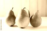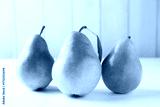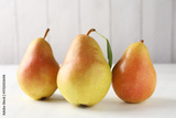 Fresh ripe pears on white wooden table, closeup