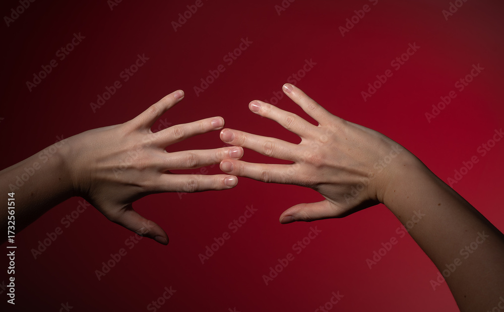 Hands with natural nails. Glossy japanese manicure with clean polished surface shows neat care,