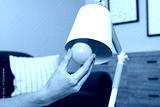 Woman changing light bulb in lamp at home, closeup