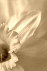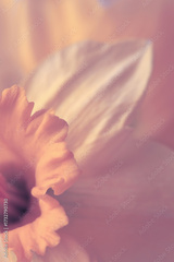 Smoke close-up selective soft focus beige, pink Narcissus flower bud. Macro natural blur macro background.