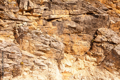 life, biology, ecology concept. grains of various weeds are transferred by wind to the cracks of the mountain side and then they are growing there, fighting for their existence