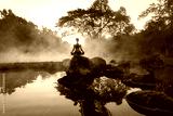 Healthy Yoga woman lifestyle balanced practicing meditate and energy yoga on the bridge in morning and sunset outdoors nature. Healthy life Concept