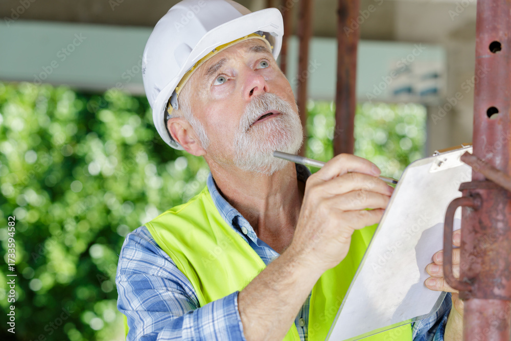 male civil engineer checking projects on construction site