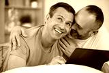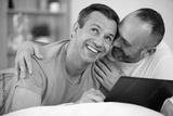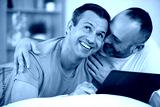 affectionate gay couple using a laptop