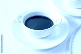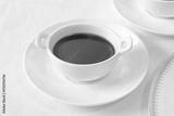 Aromatic Brew in Ceramic Elegance: An elegant, overhead shot captures a perfect cup of dark coffee in a pristine white ceramic cup, setting the stage for a moment of tranquil indulgence.