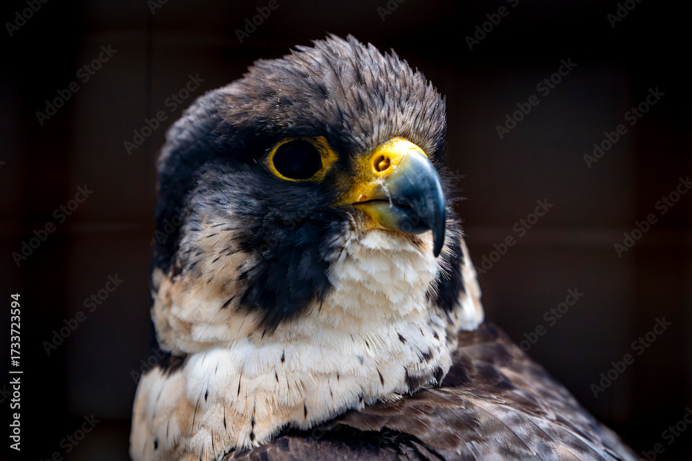 peregrine falcon bird of prey close up portrait on black background