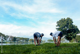 Athletic Asian Men Stretching with Serene Lake and Mountain Views While Listen Music on Headphones