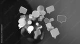 Digital concept representing communication, social media, technology, and cloud computing through connected speech bubbles. Ideal for illustrati