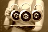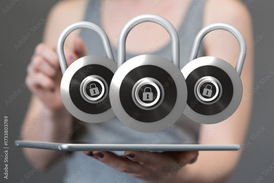 Image of three padlocks on a tablet, symbolizing data protection and online security.