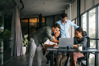 Success group of multiethnic entrepreneurs and business people achieving goals in corporate office