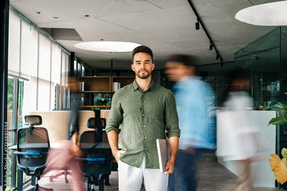 Group of young multi-ethnic startup business team collaborating on project in modern office