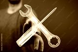 Concept image of tools, repair, maintenance, service, digital technology, support, solution, handyman, fix.
