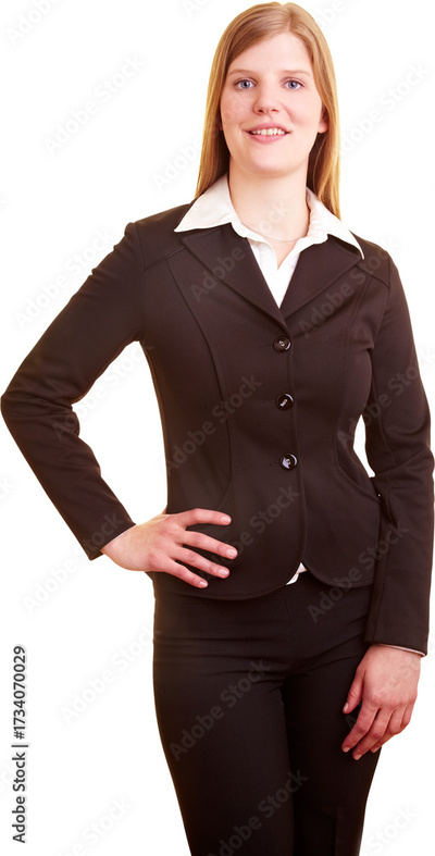 Selbstbewusste Geschäftsfrau blickt zur Kamera