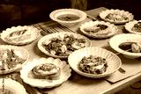 Vibrant dishes with fresh ingredients and unique flavors at a lively gathering