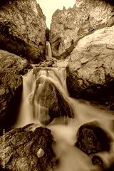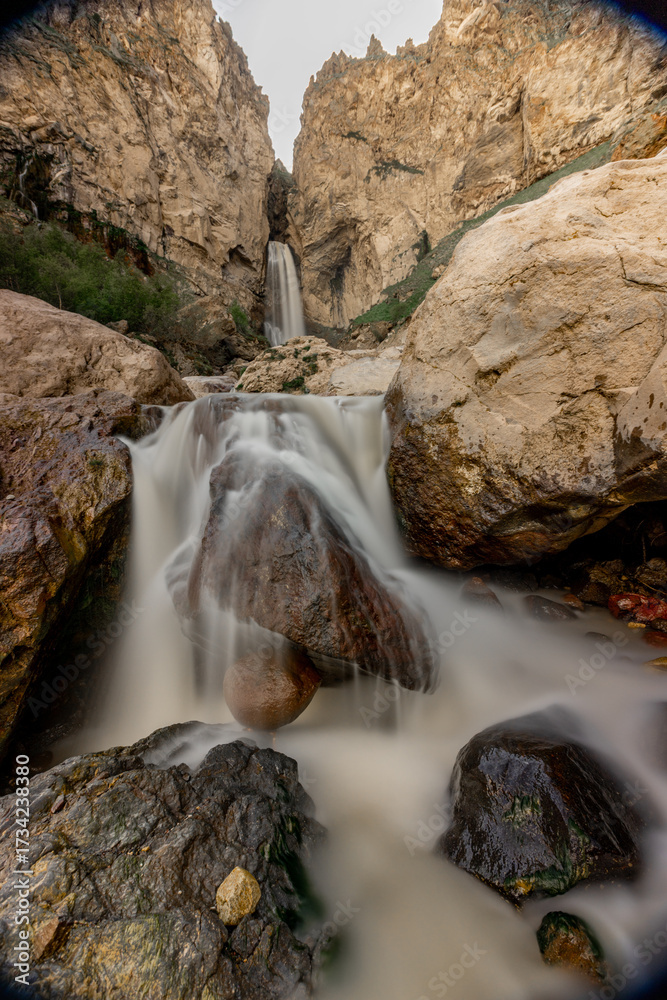 A breathtaking landscape of waterfall in mountains and deep valleys