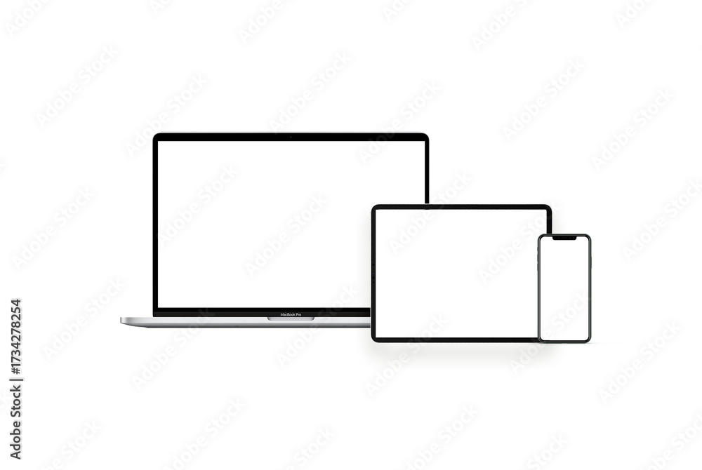 Realistic Laptop, Tablet and Smartphone Mockup, Multi-Device PSD Template, Editable Technology Mockup for Web Design, UI/UX, Branding, Presentation, Freelancer Projects, Modern Digital Workspace