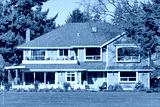 Luxury residential house with big green lawn on the back yard