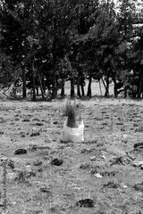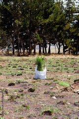 Photograph of plants (pines) to reforest an area affected by forest fire. Environmental concept.