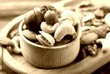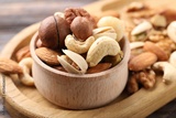 Mix of different nuts on table, closeup