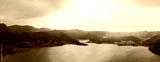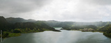 Panoramic view of beautiful lakes, volcanic craters and lush vegetation visible at Miradouro das Cumeeiras on the island of Sao Miguel in the Azores
