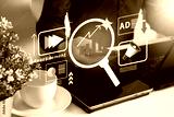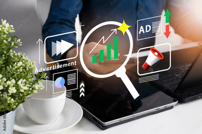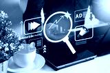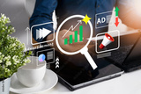 Business concept using advertising media and viewing online advertising rating data, working in communication and product advertising.